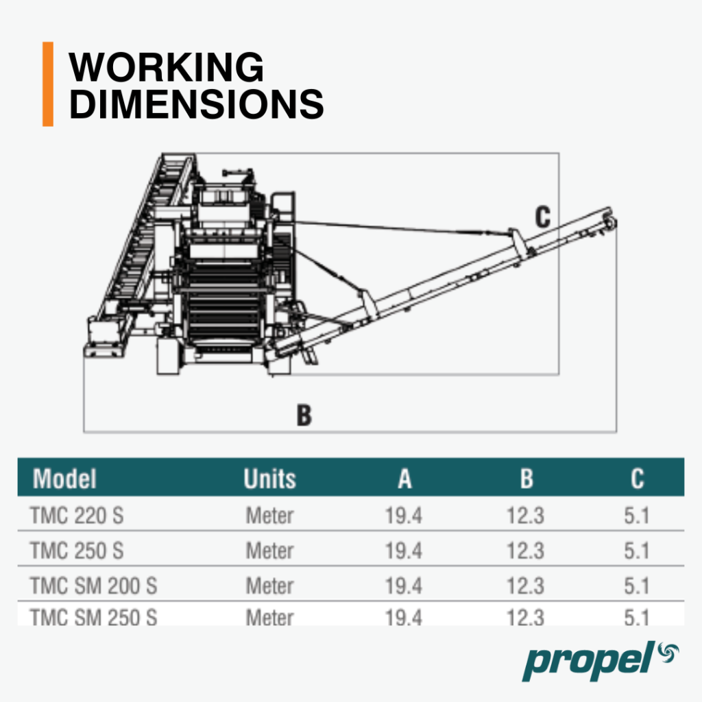 Dimensions | Units | TMC 220 S | TMC 250 S | TMC SM 200 S | TMC SM 250 S |