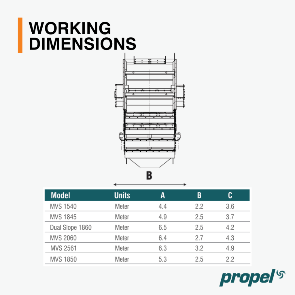Propel MVS Screens are highly versatile, suitable for primary, secondary, and tertiary screening applications. With a standard slope angle of 18°, they can be customised for specific needs and are adaptable for wet screening when equipped with spray pipes.