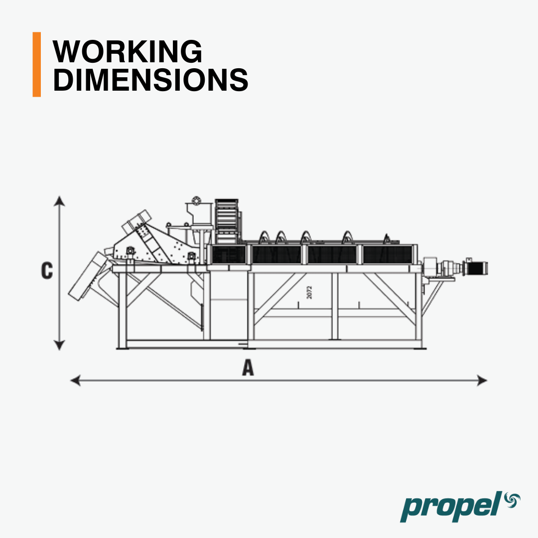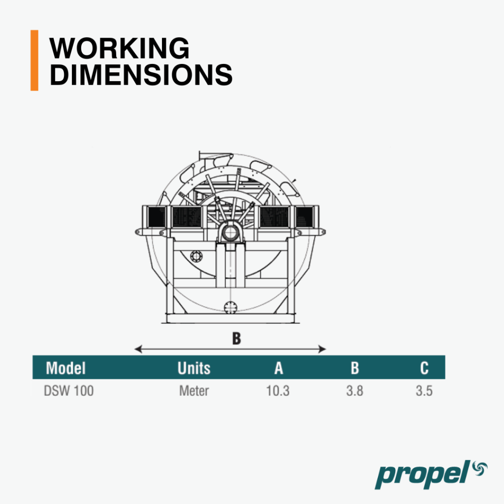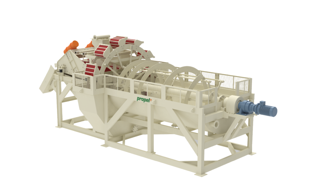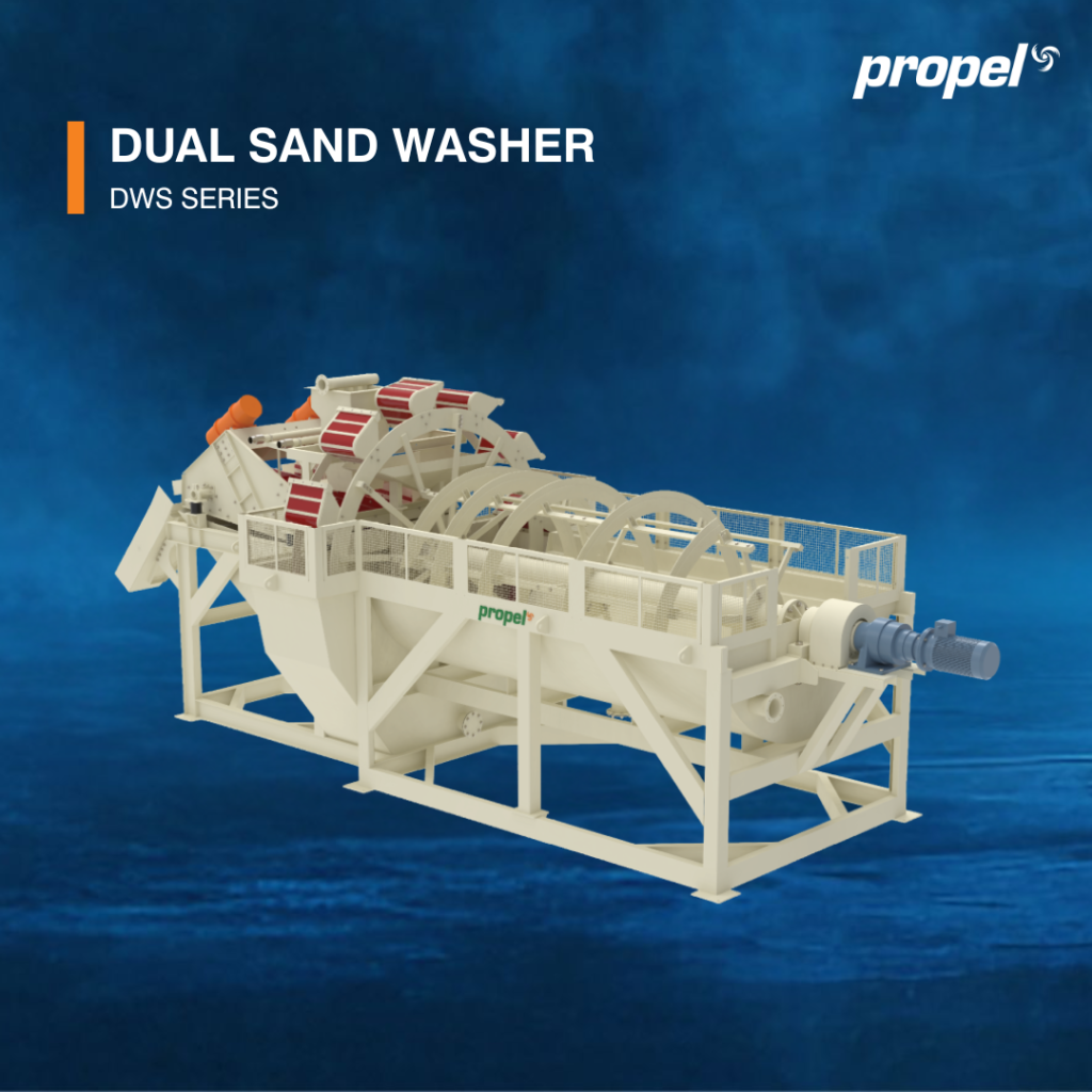 The Propel Dual Sand Washer (DSW) features a wheel-bucket design, ideal for washing and classifying M-sand and P-sand, with the added benefits of low energy use and minimal maintenance.