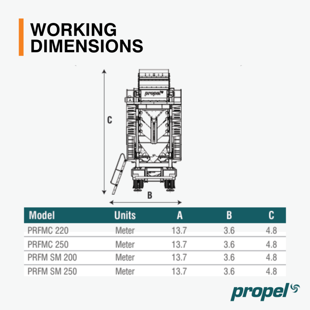 Dimensions | Units | PRFM SM 200 | PRFMC 220 | PRFMC 250 | PRFM SM 250 |